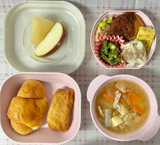 | 豚汁 | 豚肉(アメリカ産、カナダ産) 人参(北海道産) 大根(群馬県産) こんにゃく(群馬県産) 豆腐(アメリカ産) 長ねぎ(秋田県産) |