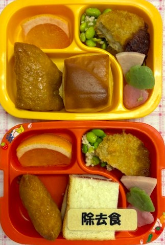 | 小松菜と油揚げの和え物 | しらす干し(インドネシア産) 小松菜(宮崎県産) 人参(北海道産) 油揚げ(アメリカ産) |