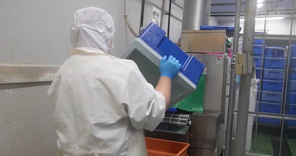 | 22:00 出勤 青箱洗い、製造準備 22:30 炊き出し 23:15 ご飯あけ 0:00 製造スタート(おかわり、おにぎり、ミニ丼) 2:00 休憩 休憩後作業スタート 5:00 製造終了 機械洗い、場内片付け 6:00 退勤 | 22:00 出勤・朝礼 23:00 出勤・朝礼 2:00 冷凍当日分終了 3:00 冷凍翌日分準備終了・退勤 3:00 当日分ピッキング終了 3:00 データ入力・翌日分準備 5:00 退勤 | 23:00 調理員出勤・朝礼 23:30 作業開始(揚げ物・切り物・焼き物など) 3:00 盛り付け作業準備・レンジアップ 4:30 朝礼・先生用弁当盛り付け製造開始 5:00 調理員作業終了・退勤 5:30 彩り弁当盛り付け製造開始 6:45 盛り付け作業終了 7:00 レーン清掃・洗浄作業(5人) 8:00 作業終了・退勤 | 6:50 出勤 6:55 早出朝礼 7:00 除去食・2歳児・製造開始 7:30 おやつ製造 8:00 朝礼 8:05 製造開始 10:30 製造終了 10:40 仕込み 12:00 清掃 12:30 退勤 | 9:50 出勤 9:50 伝票受け取り 9:50 納品へ出発 11:30 納品完了 90分休憩 13:00 回収開始 14:30 帰社 荷下ろし 車の清掃 15:00 退勤 ※コースにより出退勤時間の変動あり | 14:15 出勤・朝礼 洗浄準備 14:30 【洗浄業務】 園児用弁当 先生用弁当 備品 17:00 食管 彩りほっとランチ 18:30 清掃 19:30~20:00 退勤 ※食数により退勤時間の変動あり |