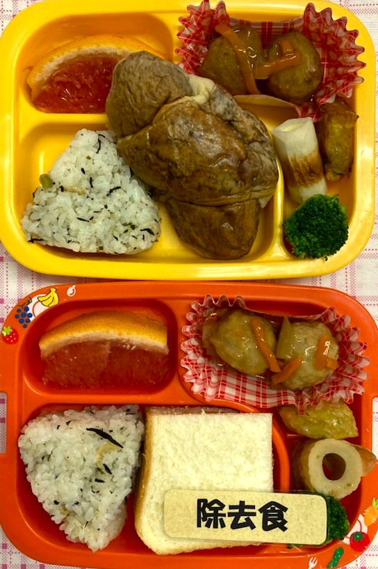 肉団子の野菜あんかけ | 鶏肉(国産) 豚肉(カナダまたは国産) 玉ねぎ(国産) 人参(千葉県産) |