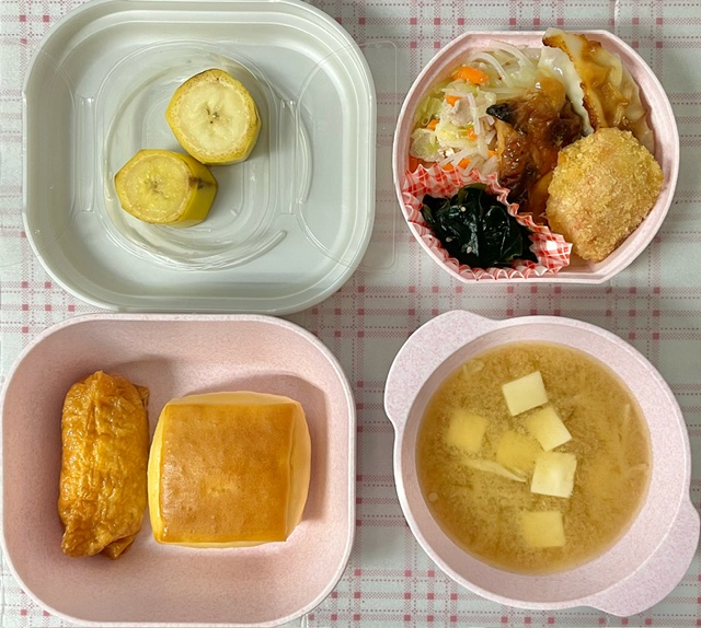 豆腐とえのきの味噌汁 | 豆腐(アメリカ産) えのき(福岡県産) |