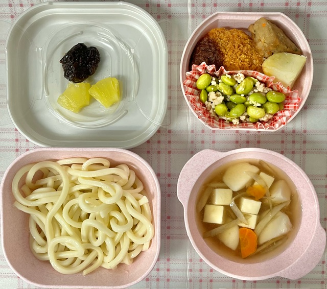 | けんちんうどん | うどん(北海道産) 里芋(宮崎県産) 豆腐(アメリカ産) 鶏肉(岩手県産) 人参(北海道産) ごぼう(青森県産) |