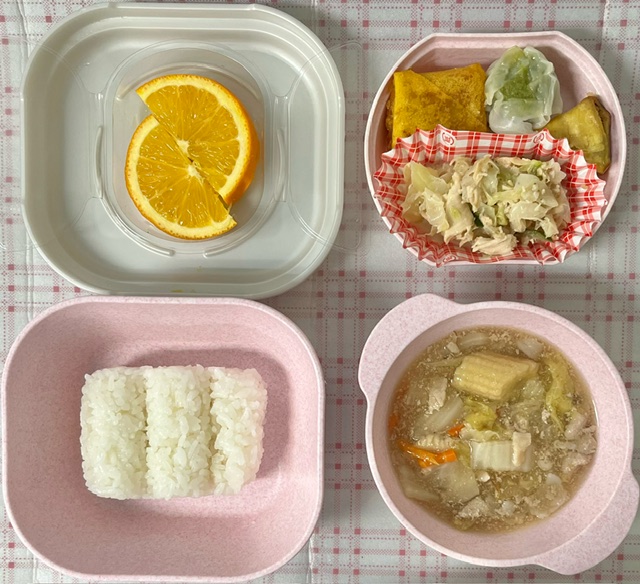 小松菜と筍のすまし汁 | 小松菜(宮崎県産) 筍(タイ産) |